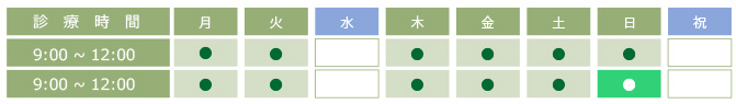 休診日 水曜、日曜の午後、祝日